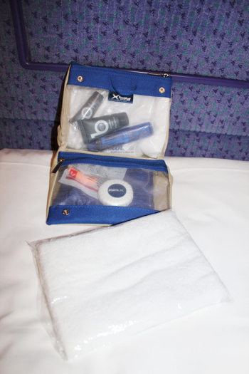 Now that you've toured the train, let me tell you about our experience aboard. I was frankly disappointed. The train itself is getting long in the tooth, but that happens and I won't count it against First Scotrail. I will say, though, that a dirty floor and some garbage from the last occupant - and some hair in the washbasin that wasn't mine - DOES count against the train operator. My sheets appeared to be fresh, though, and you receive a decent complimentary toiletries kit which includes a facecloth and a small hand towel.